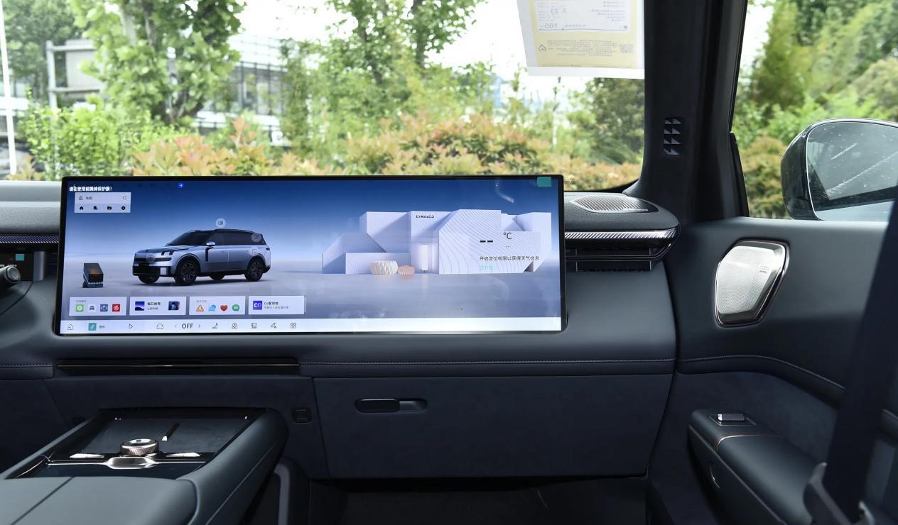 配备12.66英寸窄条液晶仪表、95英寸AR-HUD抬头显示以及30英寸中控副驾一体式大联屏,分辨率达到了6K,显示效果细腻,另外还配有30英寸6K吸顶娱乐屏,几块屏幕之间支持多屏交互,通过便捷的手势控制,如三指飞屏,内容可以在前后排屏幕间自由流转,方便共享影音娱乐。在智能座舱方面,领克900搭载双高通骁龙8295芯片,为多屏联动和多任务处理提供充沛算力。内置LYNK Flyme Auto 2智能座舱操作系统,内置丰富应用,车机UI设计美观,屏幕触控操作流畅,支持多样化的桌面形态切换,如实时渲染天气变化的“如然引擎”桌面,让数字世界与现实世界无缝连接。