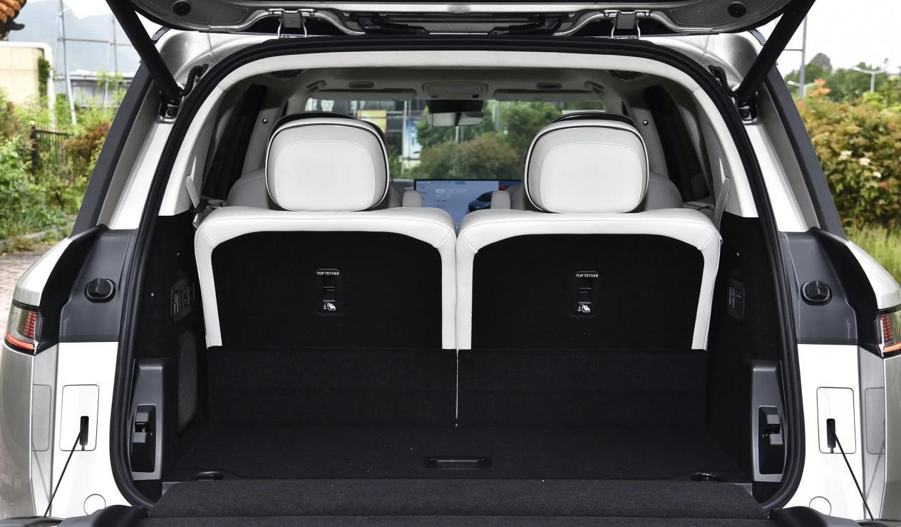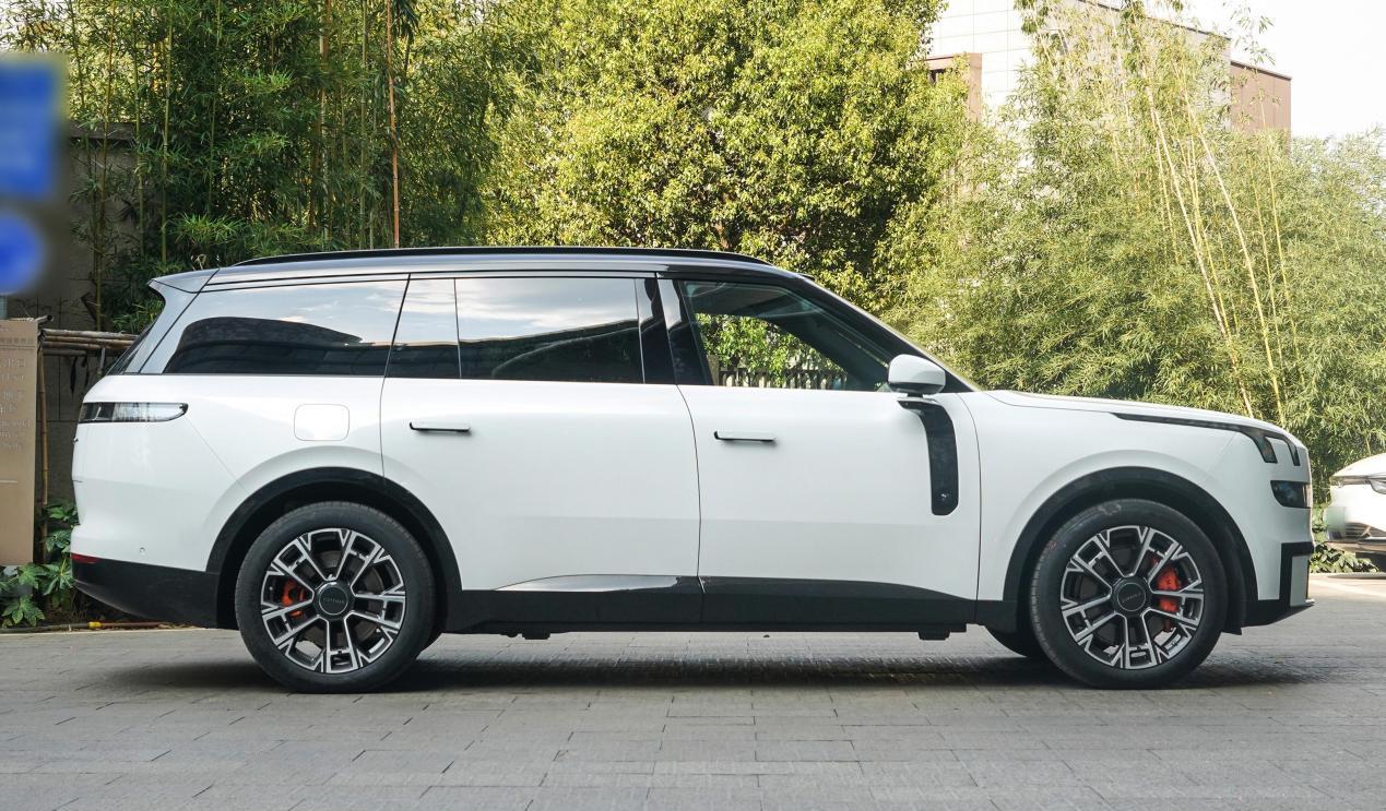 车身侧面线条流畅修长,曲面车门设计和隐藏式门把手显得异常简洁,黑化侧柱营造出悬浮顶的效果,配合庞大体型,有着类似路虎揽胜的精致与大气,21英寸双五幅式轮毂与红色刹车卡钳提升运动感。车尾设计则简洁有力,贯穿式尾灯组在点亮后拥有出色的视觉效果,尾门采用天地门设计,不仅是好看,也更加实用,整体外观在经典与创新之间取得了平衡,符合高端家庭用户对车辆气场与格调的期待。